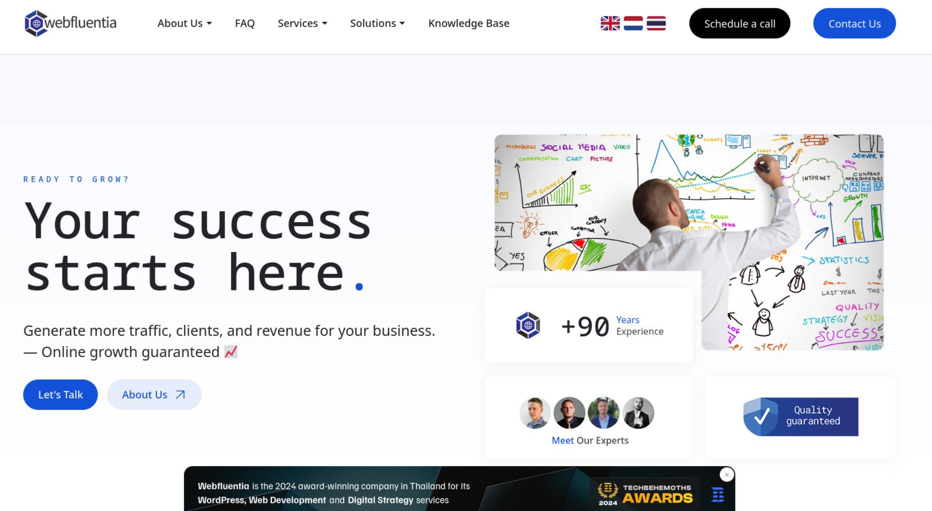 Webfluentia is a full-service digital agency specializing in digital marketing, IT infrastructure, AI, development, and data analytics. Our offerings are focused on helping our clients Build, Grow, Scale, Analyze, and Manage their online presence.
